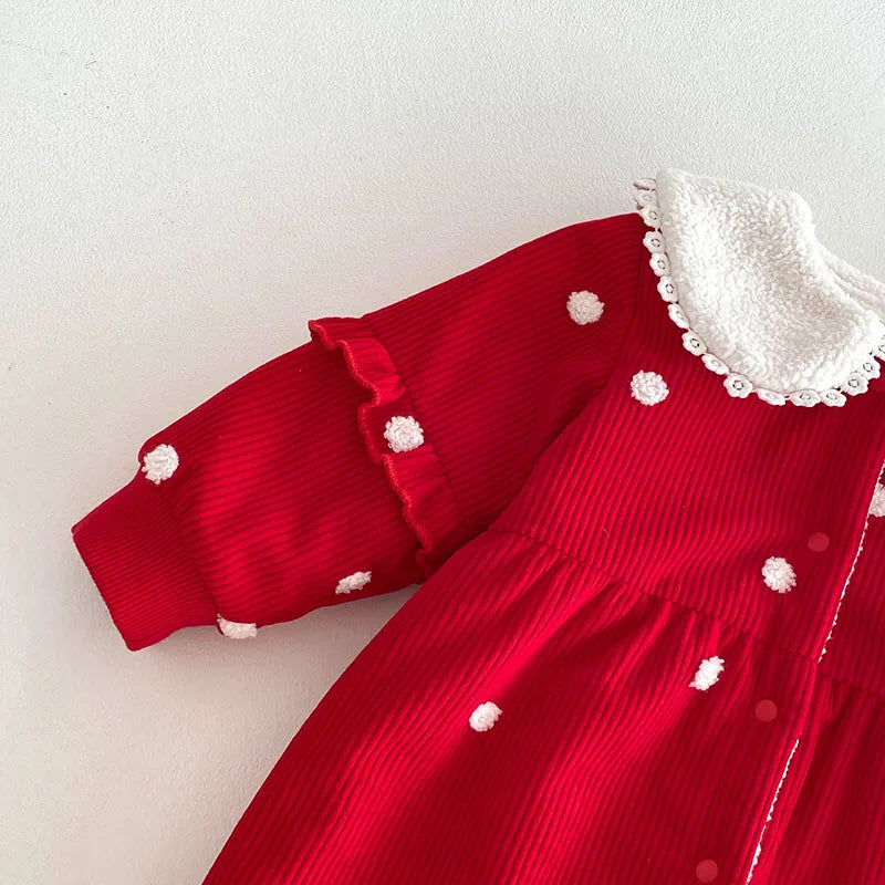 - Acolchoado, com estampa de bolinhas, em fleece, vermelho, grosso e fofo.